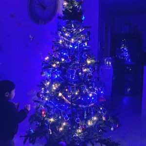 我が家のツリーの ナイトバージョンです🎄✨ 左に息子💗右にニャンコ