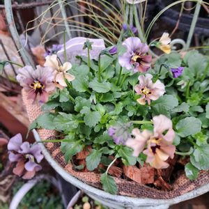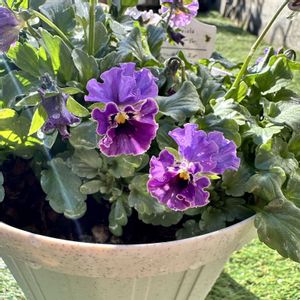 1枚目 ビオラ Zaijinビオラ パピエ 2枚目 上、下ともに、ビオラ ヌーヴェルヴァーグ ラピスラズリ 3枚目 ビオラ ジョリージョリ 4枚目 ビオラ マイガール 5枚目 ビオラ ヌーヴェルヴァーグ アクアレール 【まさかの1日3投稿目。見てもらいたかったんです😭】 年の瀬ということで、我が家の個性派〜ハイブランド品ビオラでまとめてみました😄 もしかすると今シーズンは販売が終了している品種もあるかもしれませんが、今後の購入に少しでも参考になれば幸いです。 Zaijinビオラは、生産元の木村園芸さんのネットショップ(BASE内に開設されています)から、購入しました。最小購入単位が6株で、ベランダにはちと多いですが、どれも綺麗なので良しとしています。販売日は、木村園芸さんのインスタをチェックしているとわかりますよ。 ラピスラズリは、下のピンク色が確か、今年の新色ですよね。かわいいですね☺️この2株は別々のネットショップで購入し、届きたての頃はどちらも薄紫色で大差なく、こういうこともあるかと少し落ち込んでいましたが、気温が低くなるにつれ発色が変わってきました。上の株の若干ぎらついた発色がラピスラズリって感じがしますね。 ジョリージョリはYouTubeでおなじみのゆうきさんが育種されたビオラです。生育旺盛で、ピッと耳が立ったかわいい小花を沢山咲かせてくれます。また小さいお花ですが、1輪の中に淡い色が幾つもあり、水彩画のように美しいです。 マイガールは、レディでお馴染みの石川園芸さんの最新品種です、フリルがかった小花が沢山咲いています。可憐な印象です。 大トリは、いつの間にか沢山咲いていた、アクアレールにしました。妖艶ですね☺️ と、長々と書いてしまいました😅 ここまでお読みいただき、ありがとうございました🙇♀️