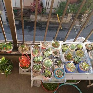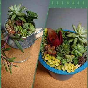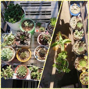初めての寄せ植え😅 突っ込みどころ満載です… センス… 土見えとる… センス… なんかよくわからん… センス… みんなどうやってあんなぎゅうぎゅうに寄せてんだろ… ん~…🤔 このまま育つんだろうか? 根っこが出てる物もあるが、出てないのもある、カットしたのを挿せば良いってこないだ趣味の園芸でやってたけど…ホントかいな? 不安しかない😅 あ~しかし、センス…