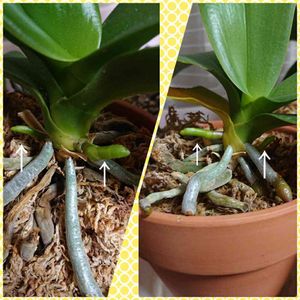 胡蝶蘭 上に向かって伸びているような… 花芽? 根っこか? 根っこだな、だとしたら、なぜ上に向かってんだろうか? ミキさんに花芽と教えていただきました😎 🙌🙌🙌🙌🙌🙌🙌🙌🙌🙌🙌