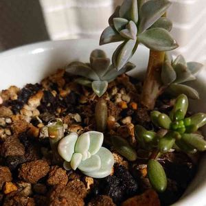 チョンパした朧月 根っこ出たので、むっちりさんたちと一緒に植えました(^-^) 鉢いっぱいモリモリになってくれ✨