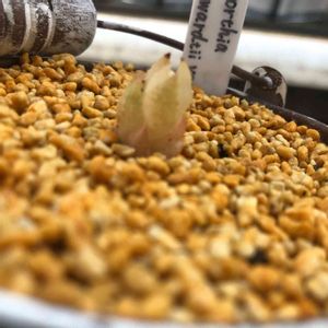 オブツーサさん×ギガスさんの交配種 名前は不明です😅💦 ギガスさんの遺伝子が濃いめ⁇ ギザギザ感が強めですが🪚 小さいながら 窓がしっかり🪟✨✨✨ まだ2〜3cm程の株ですが 仔株と花芽🤩✨✨✨ 植え替えの時に 弱っていた根をとっていた時に‼️ 親株に着いていた小さな小さな 仔株がポロリ‼️ 無理矢理切り離した感が とても罪悪感(T ^ T)💦