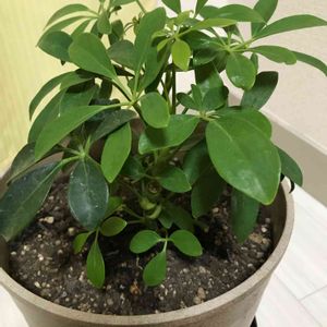 シェフレラ、植え替えました。 茶色く変色して枯れかかってしまった原因は水やりの際にいつもは鉢カバーに水が貯まらないようにしていたのがうっかりしてしまい、たっぷりの水が鉢底に…。 変色した1本、かろうじて下の方がまだ緑色だったので上を✂して別鉢に植え替えて様子を見ることにしました。残り3本はまだ元気そうなので土を替えてもとの鉢に。 どうして気づかなかったのか…💧 なんとか復活してもらいたい(。>ㅅ<。)💦💦
