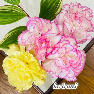 先日貰ったアレンジメント 一番お気に入りの縁どりカーネーションが まだ綺麗に頑張ってます(*^^*)🌸 花瓶に移してあげました🌸🌼