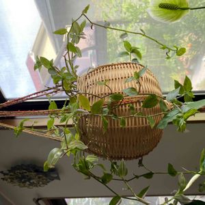 ちょっと分かりにくいですが、姫モンステラの根が40㎝位伸びてしまってます😅 切るのも忍びなくてそのままにしてきましたが床につきそう💦株分けした鉢もあるのでもう増やさなくて良いのに😵