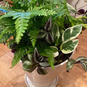 立派な陶器鉢が出てきて、観葉の寄せ植えを作ったら、 数分後に娘がガチャンと割りました😂 ケガしなくて良かったよ💦 剪定した子達ばかりなのも不幸中の幸いで、 買い揃えた苗だったら泣いてたかもー😆 暫く、根が張るまでこのまま様子見! 割れたところはテープで補強⚠️ 寄せ植え、左に寄っちゃったなぁ😅 シュガーバインよりシダっぽいの植えたいなぁー