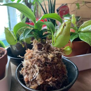 うちにあるウツボカズラのアラータ?以外を水苔に植え替え完了! 左下の子が去年うちに来た子だけど、だいぶ大きくなった😃