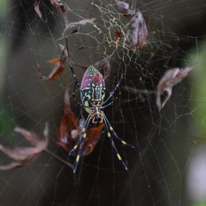 大多数の苦手な方、ごめんなさい🙏 庭に巣を張り虫を捕食している女郎蜘蛛さんです。 私もそんなに得手ではありませんが、ぽっちゃりとした姿がまるで自分のように見えなくもありません😂 巣に虫がかかると麻痺させる毒(人間には効かない😆)を注入して動きを止め、糸でミイラのようにぐるぐる巻きにして自分のペースで体液を吸い取るそうで、ざっくり言うと益虫になります。 オスの方がかなり小さめでこの子はボディが優に3センチはあるので立派なメス♀ 女郎と呼ばれるからには傾城レベルを目指してもらえたら🙆♀️👍😆 存在感抜群の女郎蜘蛛ですがその寿命は短く、メスは卵を産んだら12月には死んでしまい、オスに至っては交尾後大抵はメスに食べられてしまうのでどちらにしても寿命は一年ないらしいのです😢 Google先生にいろいろ教えてもらったらなおさら気になる存在になりました。 今朝バラの消毒をした際に、この女郎蜘蛛に薬液(特に殺虫剤💀)がかからないように散布するのが難しくて、なんだか今ちょっと元気が無さげなのが心配なんです😰