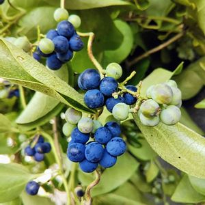 🌱💙アオツヅラフジ(青葛藤)💙🌱 ツヅラフジ科 アオツヅラフジ属 たわわに実る小さな葡萄みたい💕 アオツヅラフジ~青い実を付けることから名付けられたらしいけど、本当は「カミエビ」という名前があるそうです。 カミエビのカミは「神」、エビはブドウ科の「エビヅル(エビカズラ)」から。 エビヅルは薬効があり「神のエビヅル」と言われていましたが、エビヅルの実がアオツヅラフジの実と似ていることから「神のエビヅル」が転じて「カミエビ」と呼ばれるようになったそうです。 別名に「ピンピンカズラ」「チンチンカズラ」なども。 現在は「アオツヅラフジ」の呼び名が定着しているとのこと。 ブドウの様な果実はヒヨドリやツグミなどがついばんで種を運ぶ役目するそうですよ。 漢方薬としての利用もありますが有毒なので食用にはならないとのこと‼️ 美味しそうなのに😱