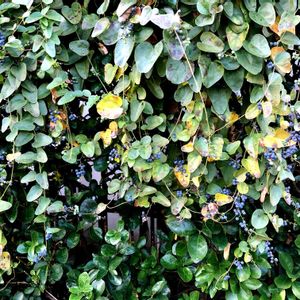 アオツヅラフジ カミエビ(神衣比) 生け垣の間からヒョロリと伸びてきて、下に隠れている実は鳥にまだ見つかっていない(^∇^) 生け垣に絡み付くものだから うかつに剪定もできない… ウソです!カミエビとは関係なくツゲもサツキもボサボサです(゜o゜)\(-_-)