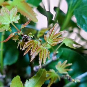 葉っぱが出揃いましたー🍁 って、あれ( Ꙭ)? このもみじ🍁 去年より葉っぱ大きくなってる( Ꙭ)! このもみじは 葉っぱが小さいタイプなんだなと思い 育ててきたのに…… 葉っぱが小さいのがかわいいのに…… 針金やら植え替えやら肥料やら めずらしくお手入れ ちゃーんとしてあげたら 元気ででっかい葉っぱが 出てきてくれちゃったー_(┐「ε:)_ズコー やっぱり奥深いなbonsai( Ꙭ) これはこれでかわいいぞ( Ꙭ) 嬉しいような悲しいような 無事に葉っぱが出てきてくれたから ありがとうだね( ˙꒳˙ )ウン!!