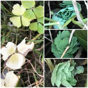 西洋オダマキ 地上の葉が黄色く枯れてきてしまった💦また今年も咲かないかな、と残念に思っていたけれど、かき分けてみるとあちこちに小さな芽がクルクルしていました🌀