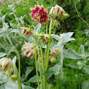 オダマキが咲きはじめました(≧∇≦)b 一つ一つの花は小さいけど花びらがいっぱいで可愛い💕 地植えにして3年、ほったらかしですが毎年咲いてくれます。