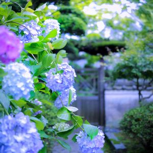 紫陽花と庭門扉…🌸✨ お疲れ様です(*ฅ́˘ฅ̀*)♡ 今日も1日お疲れ様でした…✨ 日に日に蒸し暑くなってきましたね~ ゆっくりお風呂に浸かって疲れ取りましょうね…♡