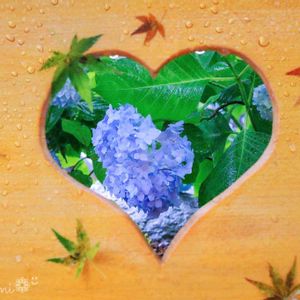 ハート型にくり抜かれた椅子から紫陽花を眺める…♡♡ 雨降っていたからこそ水滴に紅葉が貼り付く… 紫陽花も濡れて艶やかなイイ感じの雰囲気に…🍁🌸✨