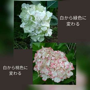 二種類の白いアジサイが あります 白から緑色に変わる 6/7投稿 白から桃色に変わる 6/10投稿