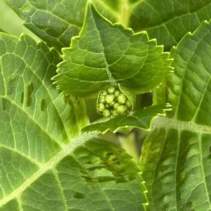 額紫陽花の蕾 水切おこし葉っぱが少し元気なし 大事にするぞ〜