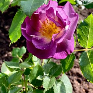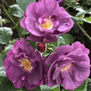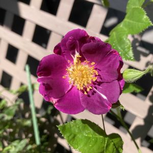 ラプソディ イン ブルー 昨年は3番目に早く咲いてくれましたが今年はゆっくり、、、、、、 越冬バラ組⑬番目に開花 鉢植えタイプ 金色の花芯がよく映える濃赤紫色で開花後 冷めた紫へとブルーイングします 王位英国バラ会の芳香賞エドランドメタル金賞受賞 スパイシーな芳香が有ります