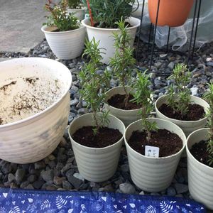 昨年挿し木したローズマリー そのままになってたので4号鉢へ1本ずつお引越し ローズマリー、親株の方は花咲いたことがないのでおかしいなと思って鉢から出したら根っこギッシリ詰まってました。