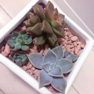 ✂️して乾かしてた ブロンズ姫と朧月とみられる子🌱 七福美尼はぎゅうぎゅう植えされてた 子達をバラした一部✂️の3種を 寄せ植えしました🤔🌱 もう一種類入りそうなスペース… と思いつつ、とりあえずは これでいいや😅