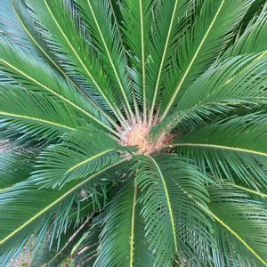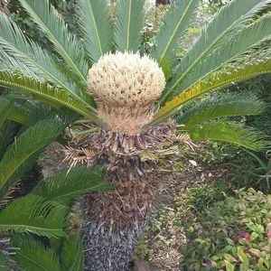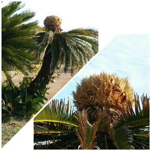 南国や海岸によく植えられているヤシやソテツ 千葉の館山や神奈川の葉山、 伊豆の海岸近くにもよく見られます 雌花、雄花、実も一緒に見られるのは珍しいです(〃∀〃)🏝♪ 実には毒もあるらしいので ワンチャンのお散歩にはご注意を🐕