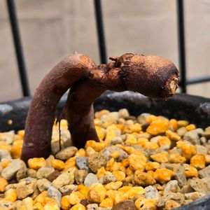 こちらのエピゲアは蕾を6箇所出してくれました 半分から上のツタは枯れているので、伸びた枝振りを見てカット✂しようと思います。 果たして塊根部は膨らむでしょうか? 来た時よりもかなり太くなってはいますが…