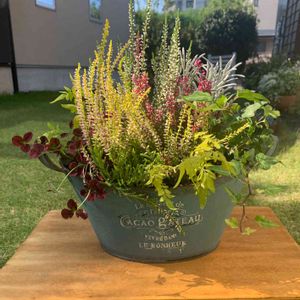 半年ぶりの投稿😄 最近お気に入りのバスケットに寄せ植え♡ やっと暖かくなってきた🎶