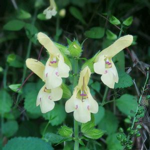 キバナアキギリ(黄花秋桐) シソ科アキギリ属の多年草 別名 コトジソウ 分布 本州~九州 図鑑を見たら、群生している写真が載っていましたが、 こちらは、数株しか生えていないうちの、たった1本の貴重な花でした。 ヒョロヒョロと、やっと、立っているように見えましたが、 今年も、頑張りました。 仲間が増えるといいな~♡と、 毎年、思います。 「花を正面から見ると、 雄しべの一部(退化した葯室)が、 淡い紫色に染まって目立つ。 これを指先で下に押すと、 雄しべが、てこの仕掛けで動き、 もうひとつの葯室が下りてきて、 指に花粉をなすりつける」そうです。 雄しべが動いて、花冠から長く突き出た雌しべに、花粉がつく仕組みになっているようです。 花粉のムダ遣いはさせたくないので、触らなくてよかったです😅💨