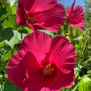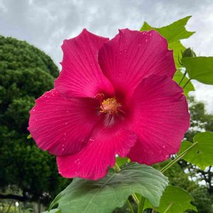 公園💐 コダチフヨウ♥️💗 芙蓉とアメリカフヨウを交配させた園芸品種だそう💓 花色はアメリカフヨウ似なのかな、とても印象的です✨✨💓