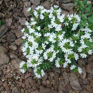 放置鉢から救出したこの植物。 枯れ枝みたいだったのに、こんなにたくさん花が咲いて、愛着湧きまくり😍❣️ どうしても名前が知りたくて辿り着いたのがこのアプリでした🌱✨ 『スカエボラ』って初めて知りました! 義祖父から義母へ、そして義母からお庭を譲り受け、手探りで始めた初めての土いじり…楽しんでいきたいと思います🙈💕