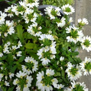 🍀🌻🪴💐🌹🌻🍀 🍀🤍スカエボラ:サンク・エール ホワイト🤍🍀 💐スカエボラの花言葉は(涼しい風を運 ぶ人)です、ブルーやホワイトの涼し げな花色のイメージです 💐花弁が5つの羽・翼に見えることから フランス語の(5)(cinq(サンク))と(翼・ 羽(ailes(エール))を組み合わせてサン ク・エールと名付けられました 💐スカエボラは5月~11月にかけて花が 咲くクサトベラ科クサトベラ属(スカ エボラ属)の植物で、病気や虫に強く 翼や扇が広がった花型が特長です 💐スカエボラは品種によっては摘芯(ピ ンチ)をして花姿を整えたり、暑さや 寒さの管理など少々コツがいる品種 です 💐サンク・エールは真夏でも常に花が 付き続けるのが魅力で、暑さが本格 化する前の時期に植えて、晩秋まで 長く花が楽しめます 🍀🌻🪴💐🌹🌻🍀