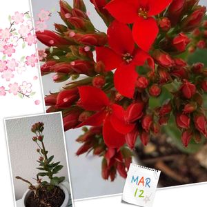 2023.03.05投稿の 二度咲きカランコエ🌼 たった一輪だったのが 2週間で満開になりました💗