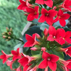 おはようございます 晴れてます☀️(• ε •) ”カランコエミリオンスター” 2度目の開花。 短日処理がうまくいきました。 もう一鉢の 八重咲きの方は 切り戻しの失敗により いまだ 緑の葉のまま。 赤い色の花は 眠い💤月曜の朝によいようです (☼◡☼)🌿💕❤️