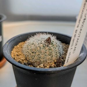 一回り大きな鉢に植え替えてからいまいち成長がわからんマミラリア・オリビアエのマミちゃん。 仔吹きに押しくらまんじゅうされて暖かそうだけど(笑)休眠期に入ったのかな⁉️