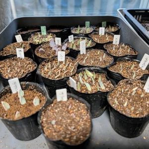 コンニチハ🤧です 春の交配はボチボチ一段落です 収穫1番目はラグナサンチェス やること無いから蒔きますか〜 ☔ですが多肉棚から ルビーブラッシュ ピンクザラコーサ 実生から アテマハック(第二弾)2ポット ルビーブラッシュ 2ポットでした😁