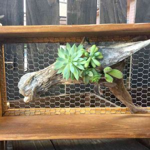 チキンネット&ウッドボックスに 流木に多肉の寄せ植え。 縦横、いろんな方向に置いても それぞれの表情があり、面白い😊