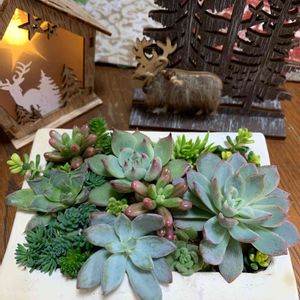 こんにちは☺️ 朝は晴れてたのに曇ってきました☁️ 昨日の休日は気圧のせいか片頭痛がして殆ど引きこもっておりました😓 犬の散歩ついでに寄った近所の雑貨屋さん(犬同伴ok)がポイント20倍をやっていて買うあても無く入ってみたら❣️いつもは多少のヒョローンな多肉が置いてある植物コーナーに何と立派な多肉達が入荷されておりました😍🍀 ひょろ〜んな姿になる前に3つお持ち帰りしましたよ(๑´罒`๑) 今日のこのpicはその子達ではありません😙 また後日に載せさせていただきます🍀 このBook planter←何故英語w 以前可愛いクリスタルローズとマリアの寄せ植えを入れてましたが残念ながらお星様に😥 新しく寄せ植えを作りました🍀 記録として 右 すみれ牡丹 上 多分チワワエンシス 下と左がわからなくなりました💦
