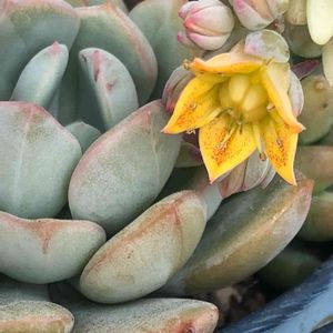 おはようございます(✿´ ꒳ ` )♡ 寄せ植えの端っこにいる子から お花が咲いていました🌼 名無しさんだけどお花は可愛いね〜(๓´˘`๓)♡