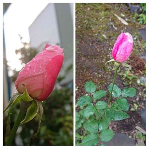 11/11 玄関先の庭にて🌹 雨滴を帯びたバラの蕾🌹🌿 寒くなっても まだがんばってくれてます(*^▽^)/★*☆♪