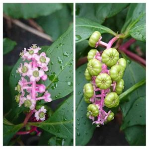 ヨウシュヤマゴボウの花と花後の実 ピンク色がかわいーですね😉 塩尻駅近辺をわんことお散歩🐾🐕より