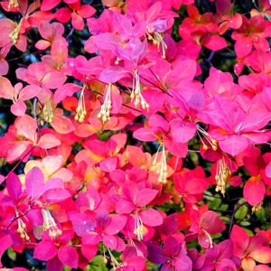 山野草、秋の紅葉🍁🍂🔴 だいぶ綺麗に色づいてきた、アブラツツジです。元々ツツジの仲間ですから美しく赤く染まります。 葉は他のツツジと区別つけにくいのですが、このまとまってぶら下がる果実が特徴的なのですぐに分かります。
