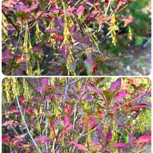 ①サラサドウダン(更紗灯台) ツツジ科ドウダンツツジ属 落葉低木 垂れているのは、花後の花柄 この後、熟すと果実の部分だけが 上を向くと、皆さんに教わりました その姿も見てみたいです😊🧐🎶 訂正: こちらはアブラツツジでした ②ツガ(栂) マツ科ツガ属 常緑性針葉樹 果実の柄が 下向きに曲がっているので⤵️ ツガのようです🌲 ③ダンコウバイ(檀香梅) クスノキ科クロモジ属 落葉小低木 黄色くなって一段と 楽しい葉の形です💛😃🎶 ①はアブラツツジに似ていると なるさんに教えて頂きました 🏷️アブラツツジを見ると似た花後の姿がありサラサドウダンよりアブラツツジに近いので訂正しました🙇♀️ お花も見たくなりました なるさんありがとうございました💕