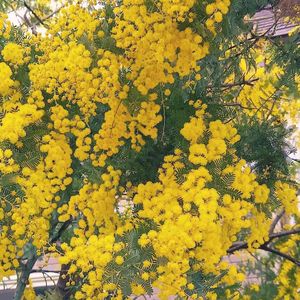 ミモザ お散歩中に満開のミモザ発見👀 すごく大きな木です、圧巻でした🎵 昨日小さなお花やさんで1枝買ったばかり😅 ちょっと分けて欲しいなぁなんてよこしまな考えが😁 でも普段家人さん見かけない💦