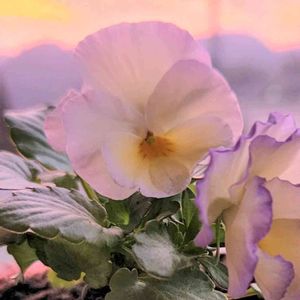 “今日の朝焼け”と“ビオラ” 朝焼けがきれいだったのでビオラと一緒にパシャリ🤳