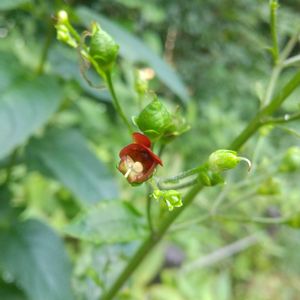 🏷真っ赤な火曜日 ツボ型の暗紅紫色オオヒナノウスツボの花が沢山咲き出して可愛いです❣️ 名前のヒナは2つ並ぶ小さな丸い雄蕊を雛人形🎎に例えています。 京都府では絶滅危惧種に指定されています。 草丈 1m位 花 壺型の長さ 1cm位 ゴマノハグサ科 ゴマノハグサ属