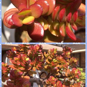 多肉にハマる前に、マンションの入り口から、一節もぎって植えた金のなる木。 もう、10年以上我が家にいます。 全く植え替えもせず…です😅 今年も良い色🍁