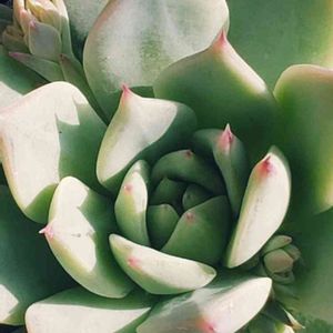 夏前に、ホームセンターのはじっこで、 エケベリア2号 100円(赤シール) まるで、ミニチュアヤシの木🌴みたいな格好で、葉っぱも変な色してた子でした 生まれ変わったみたいな、色白キレイなお姿に (*>∀<*) 名前はわからないけど、お気に入りです ♥️(* ´ ▽ ` *)♥️