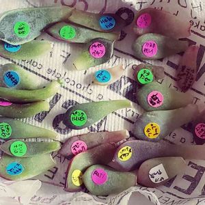 初めてメルカリで購入(*´艸`*) なんとなーく見てたら、ほぼほぼ持っていないのが集まった葉っぱちゃん達が(ФωФ) 25個+おまけ2個 一週間経ち、1個 秋麗さんが芽&根が無事にでましたー ( ・∀・)ノ この子は持ってたけど、繁殖力が高い子なんでしょうねー 元気いっぱいのようです はたして、27個からいくつ発芽してくれるのか、わくわくです o(*゚∀゚*)o
