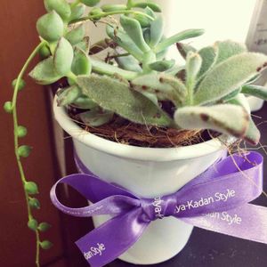 母がお世話になってる施設を訪問。妹が置いていった多肉の寄せ植えです。😊宜しくネ'〜ってLINE有りました。🌱🌵🌱
