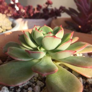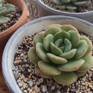 ぶっこみ鉢のピンクプリティ。 うちへ来たとき、全体的に葉がペラペラでパッカーンだった子。 だんだん真ん中から可愛くなってきて、ピンクプリティという名に近づいてきたかな(´∀`*) 葉挿しっ子も順調に成長中♪